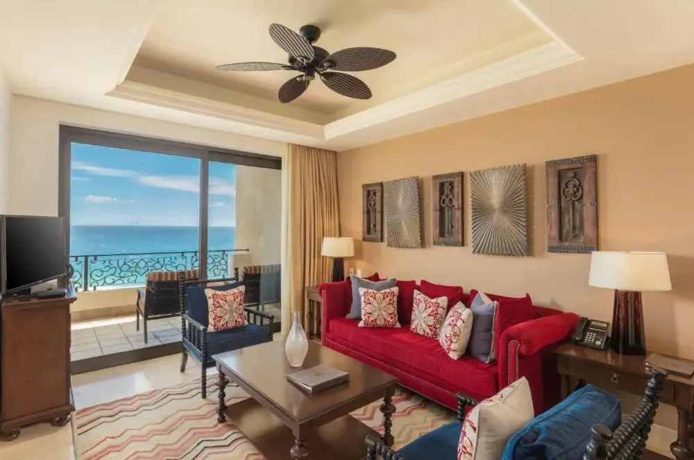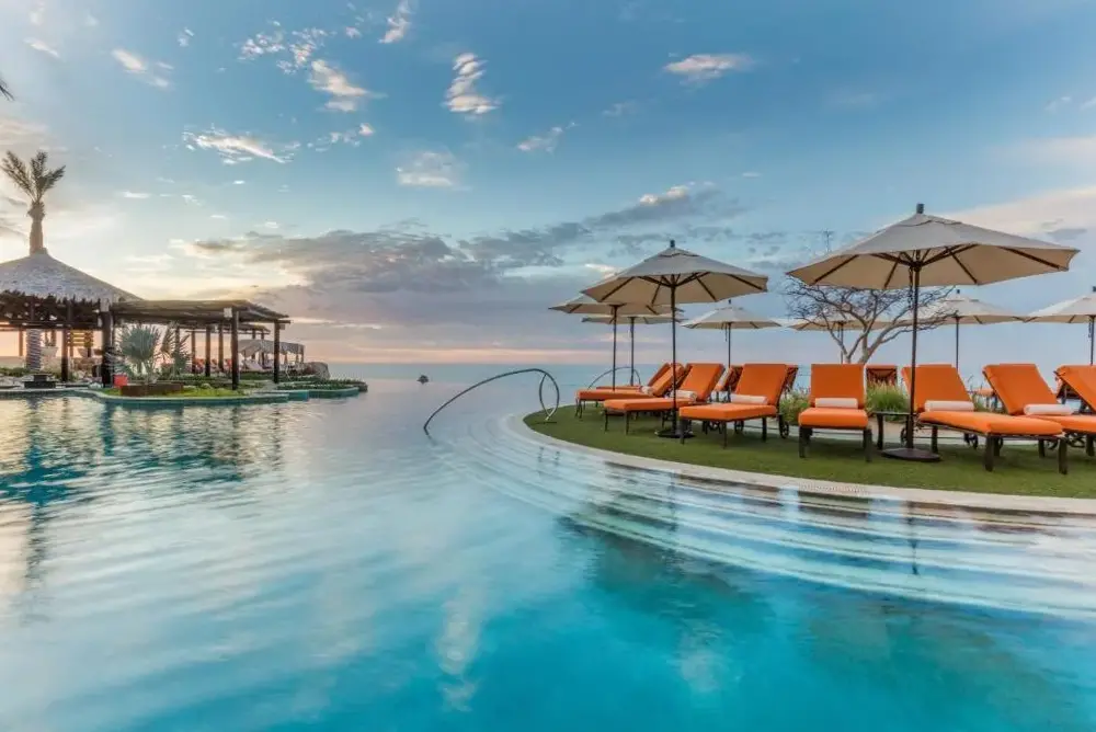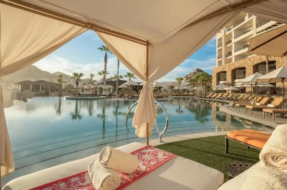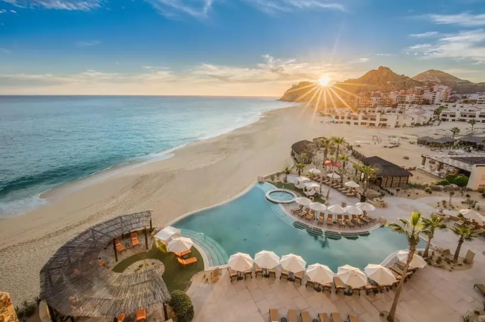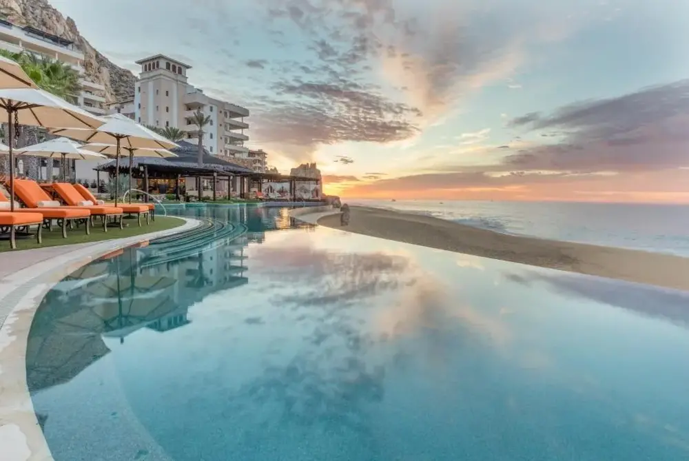 Grand Solmar Land's End Resort & Spa se encuentra ubicado en Av Solmar 1-A Col Centro, 23450 Cabo San Lucas, México. Este establecimiento ofrece una amplia gama de servicios y comodidades para garantizar una estancia cómoda y placentera. Entre sus instalaciones destacan cinco piscinas, un desayuno incluido, transporte al aeropuerto, estacionamiento privado y conexión gratuita a internet. Además, cuenta con áreas recreativas como un bar y un área de juegos para niños. La propiedad también proporciona habitaciones familiares equipadas con cafeteras o tés, así como opciones de alojamiento no fumatorias. Los huéspedes pueden disfrutar de la tranquilidad de su ubicación frente a la playa, mientras que los lugares cercanos incluyen playas accesibles como Solmar Beach a solo 100 metros, Medano Beach a 650 metros y Playa de Amante a 700 metros. Otros puntos interesantes cerca del resort son el Parque de Lomas del Faro a 3.8 km y el Restaurante Brigantino situado a 450 metros.